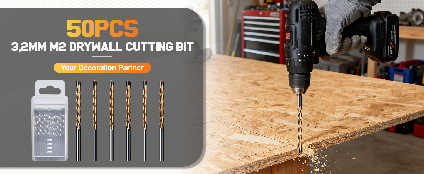【OPTIMAL PLASTER & PLASTIC BOARD COMPATIBILITY】Specifically designed to cut through plaster and plastic boards with ease. These drywall cutting bit sets can efficiently penetrate various materials including drywall, gypsum board, and plastic panels, delivering consistent and reliable performance across different material types.