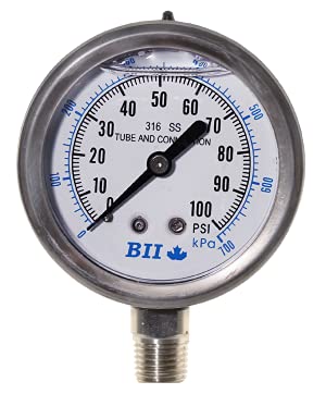 BOSHART LIQUID GLYCERINE FILLED 2" X 100 PSI LOWER MOUNT PRESSURE GAUGE FOR WELL PUMP PRESSURE TANKS 1/4" MALE PIPE THREAD