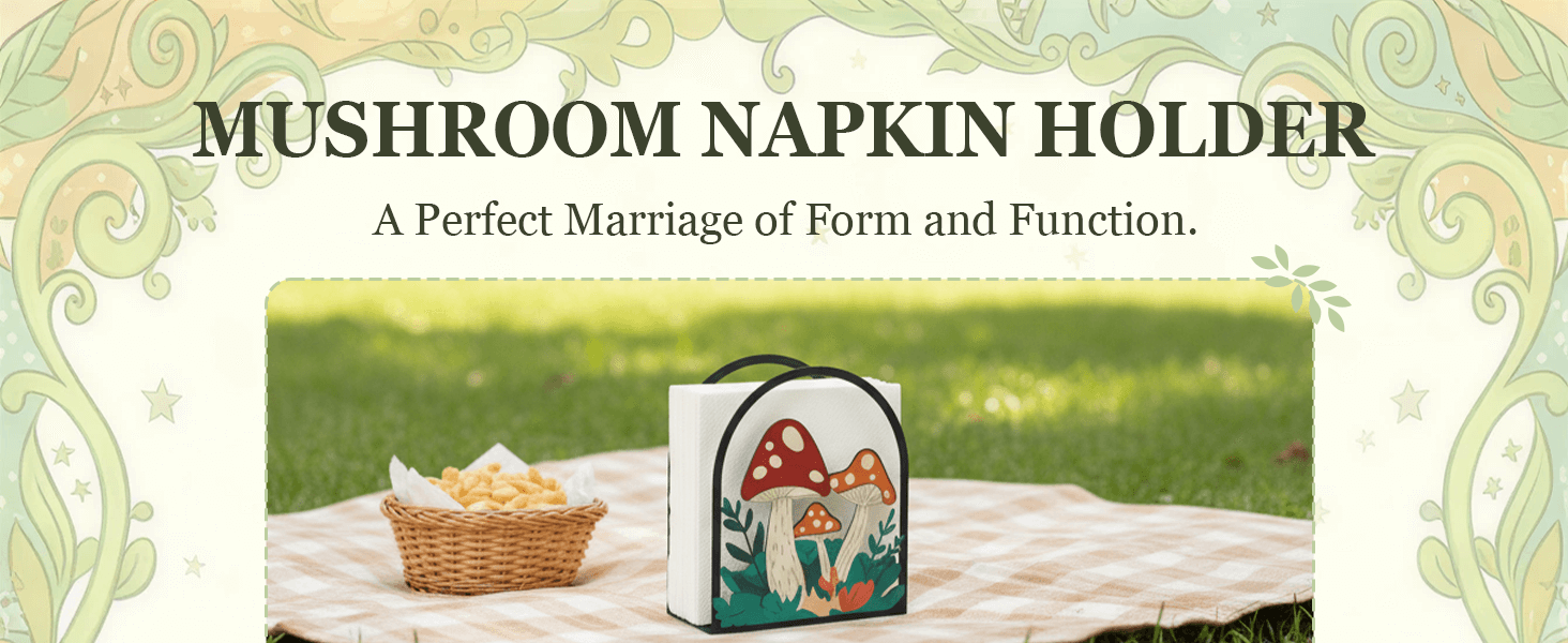 Charming Mushroom & Forest Design: Features an adorable metal mushroom and forest animal motif. It adds a playful, nature-inspired touch to your table setting, perfect for enhancing rustic, cottagecore, or farmhouse dining decor.
