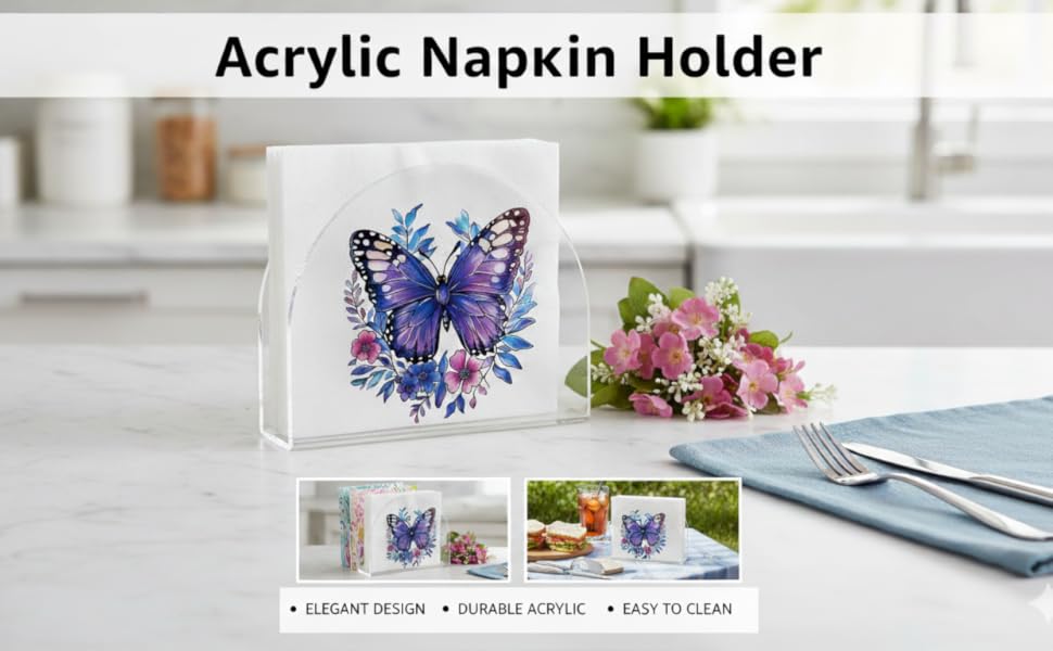 Floral Napkin Holders: Features a charming acrylic floral napkin holder style that adds personality to any table. The flowers detail pairs with the transparent body for a decorative yet practical way to store napkins for daily meals or special occasions
