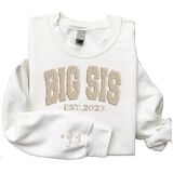 GodLover Personalized Embroidered Big Sister Sweatshirt, Personalized Name With Heart Sleeve Sweatshirt in Kuwait