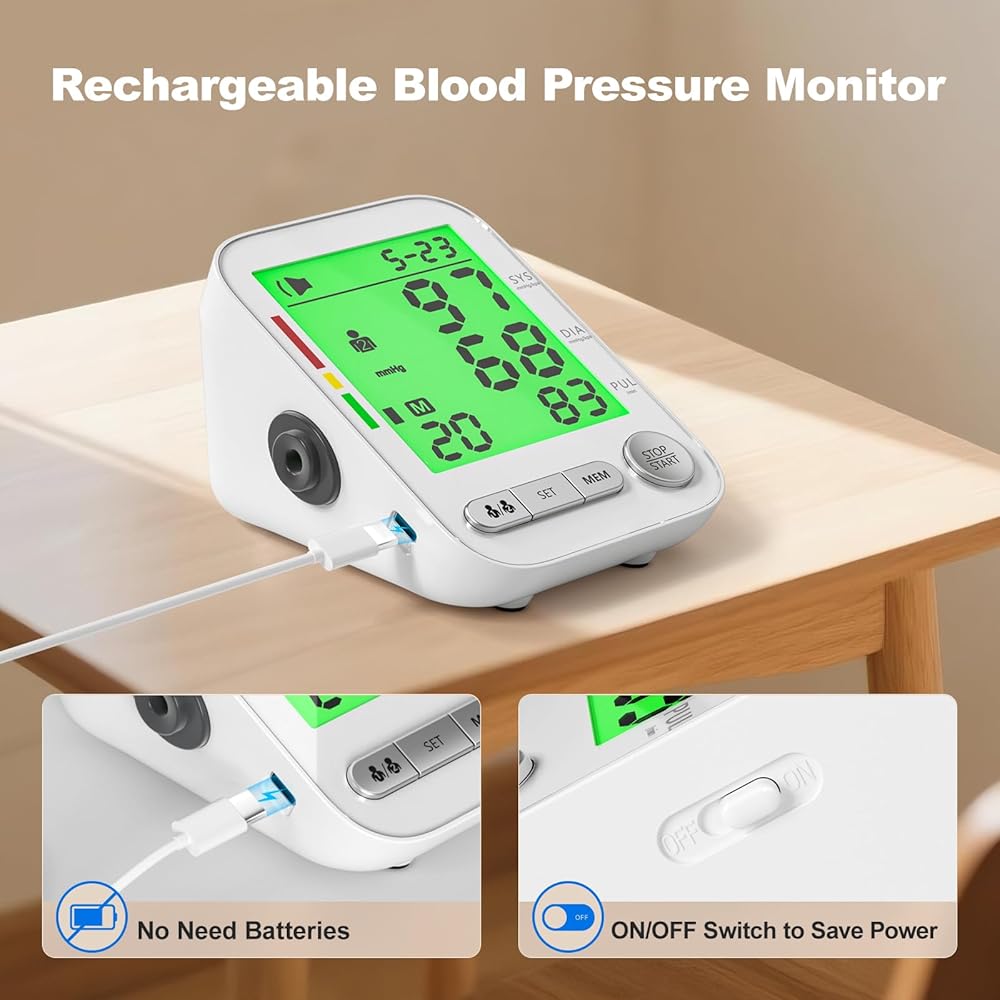 【Rechargeable Blood Pressure Monitor】Equipped with TYPE-C charging cable (AC adapter not included), no need batteries, making it more energy-efficient. Whether you are using the BP machine at home, traveling, or work, no need to worry about power problems, you can measure blood pressure anytime, anywhere, and on the go