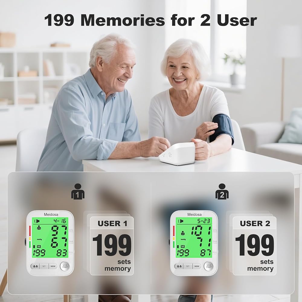 【2 User Modes with 199-Group Memory Storage】Our blood pressure monitors for home use support 2 user model and store up to 199 readings each, automatically record the measurement results of each user and help you clearly track your health and your parents. Also, our bp machine can Intelligently calculate the average of the last 3 measurements for more accurate and professional measurements