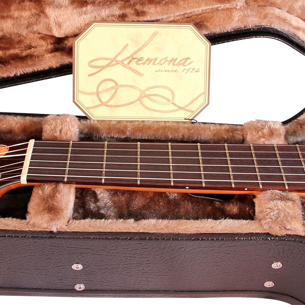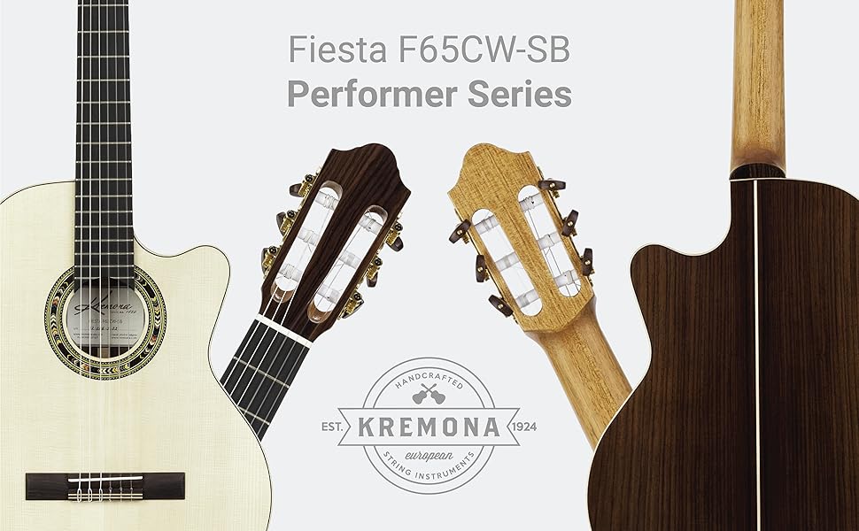 For over 85 years, Kremona has painstakingly crafted musical instruments in Bulgaria by hand. Kremona guitars proudly and affordably bring the European tradition to the US. Fiesta F65CW features old world craftsmanship with modern electronics for a complete playing experience-- Terrific for all styles of music requiring the distinct nylon-string sound and feel. Fiesta F65CW features a solid European spruce top paired with a solid Indian rosewood back for a supurb sound acoustically or plugged in. Other features include a Honduras cedar neck, ebony fingerboard, hand inlaid wooden purfling and rosette, gloss finish, bone nut and saddle for incredible sustain, and Van Gent gold-plated machine heads to keep it all in tune. Fiesta F65CW has a dual source Fishman Prefix Pro Blend pickup-complete with both an under-saddle transducer and a sensitive condenser mic - to bring all these premium features to the amplifier or mixer as they should be heard. Traditional 52mm (2-inch) width at nut and 650mm (25.6-inch) scale length. Deluxe wooden arch top hard shell case included.