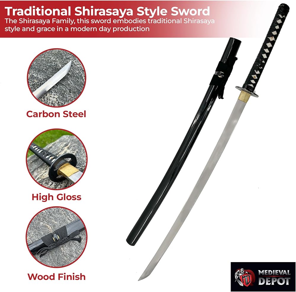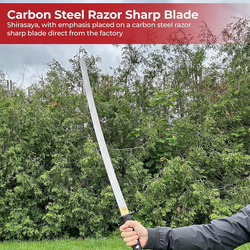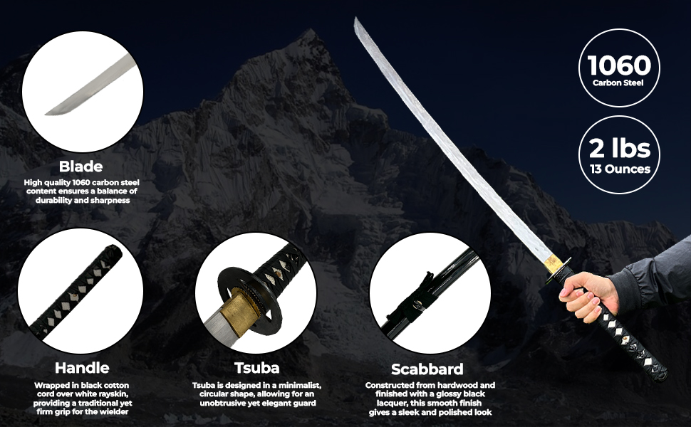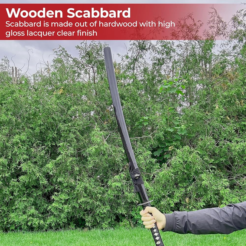 Meticulously Crafted: This replica katana boasts a hand-forged 1060 high carbon steel blade, renowned for its strength and durability. The full tang construction provides exceptional balance for practice or display.