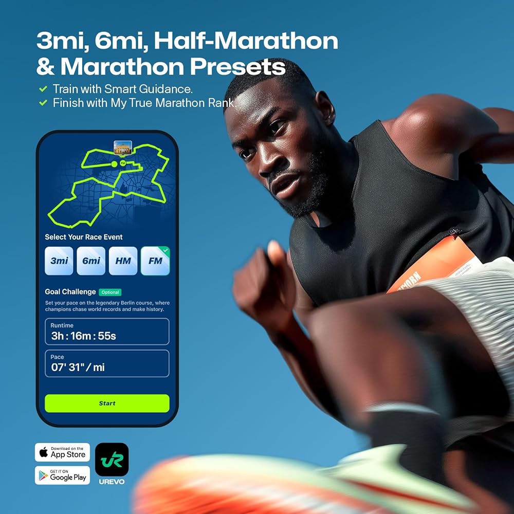 🏃【Race the World's Top Marathons at Home】Train like a pro with the UREVO CyberMega Treadmill's Marathon-Specific Training Mode, which replicates the exact route of the Boston Marathon. Whether you're prepping for your first marathon or optimizing your performance, this treadmill lets you experience real-time pace alerts, rankings, and a 12% Auto Incline for realistic hill simulations. The 12.4 MPH top speed ensures that you can build endurance and speed for any race.