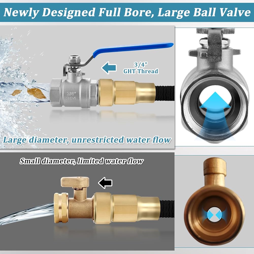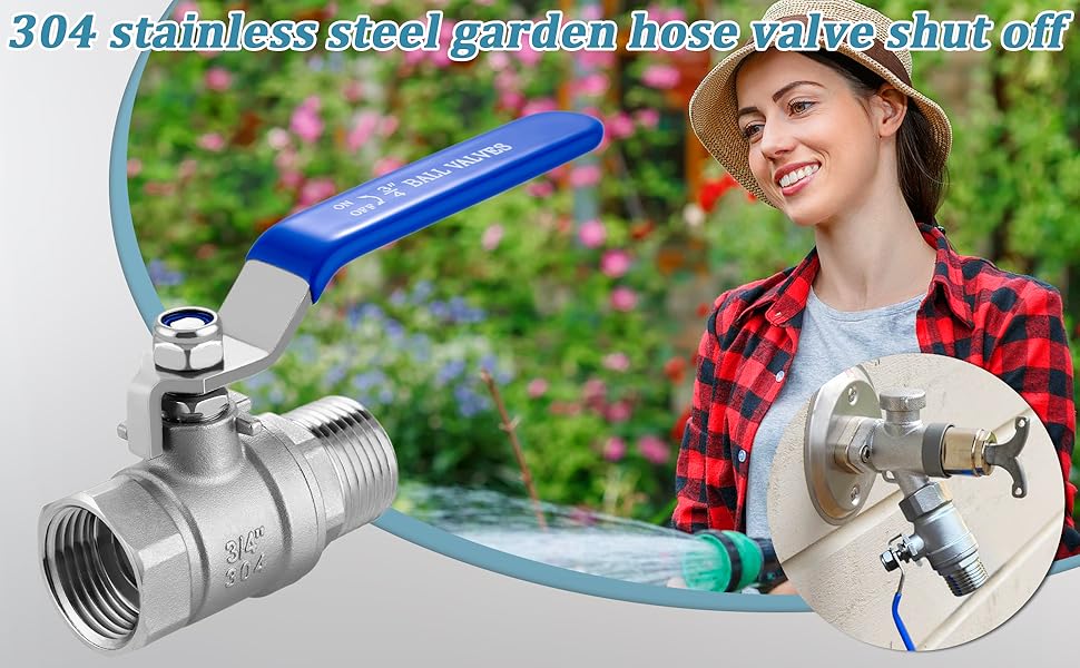 American Standard Garden Hose Thread: Water hose shut off valve using 3/4 '' GHT Female to 3/4 '' GHT Male thread, compatible with all American standard garden hoses, whether you have garden hoses, faucets, lawn sprinklers, nozzles,or other garden accessories, this valve can be seamlessly integrated into your settings. It forms a reliable connection with the rubber gasket to prevent leakage
