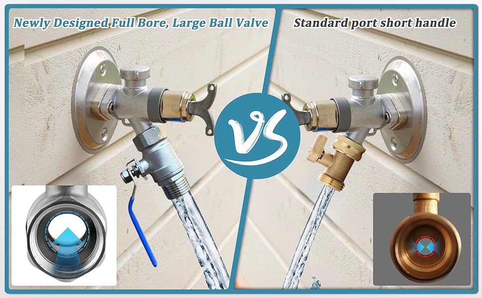 Newly upgraded full bore valve:Wantmatch stainless steel shut-off valves are newly upgraded large bore sizes up to 0.6 inches. This full bore large flow ball valve can withstand large capacity high-pressure water flow without restricting water flow. Compared with traditional old-fashioned shut-off valves, stainless steel shut-off valves can increase flow by 50-60%