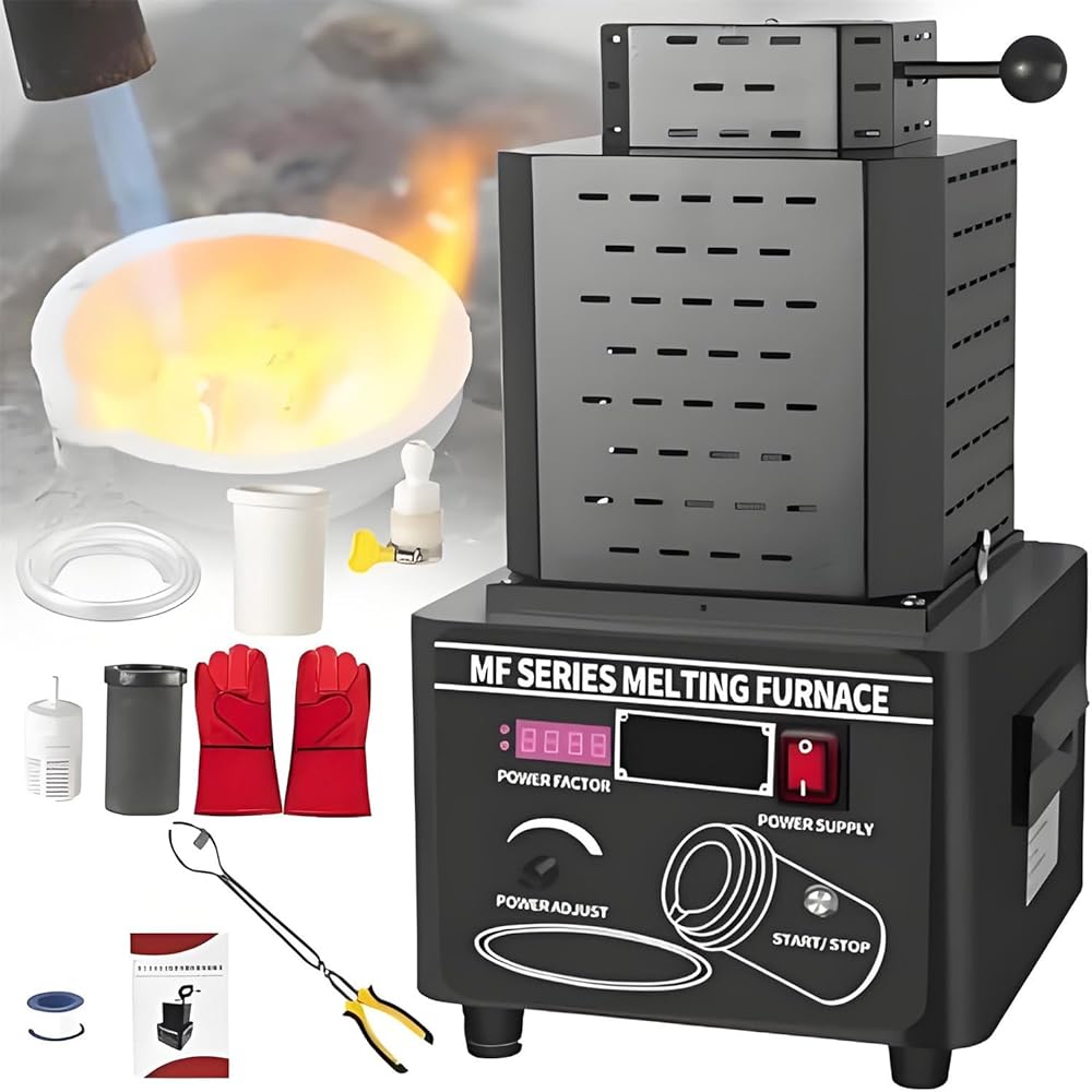 Electric Melting Furnace 5000W Electric Gold Melting Furnace, 2912℉ Mini Medium Frequency Melting Furnace with 3KG Graphite Crucible,Smelter Furnace Casting Furnace 3-5Min (Black 3KG)