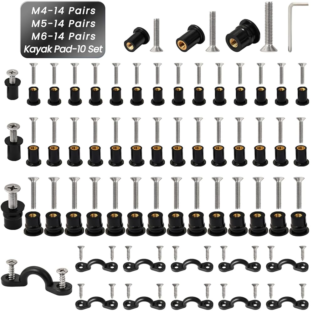 Large Quantities in Case of Emergencies, Package Includes: You will get M4 M5 M6 rubber well nuts totally 42 pairs(each size 14 pairs, 1 pairs includes nut and screw) and 10pcs nylon bungee deck loops tie down eye and 20 pcs stainless steel screws