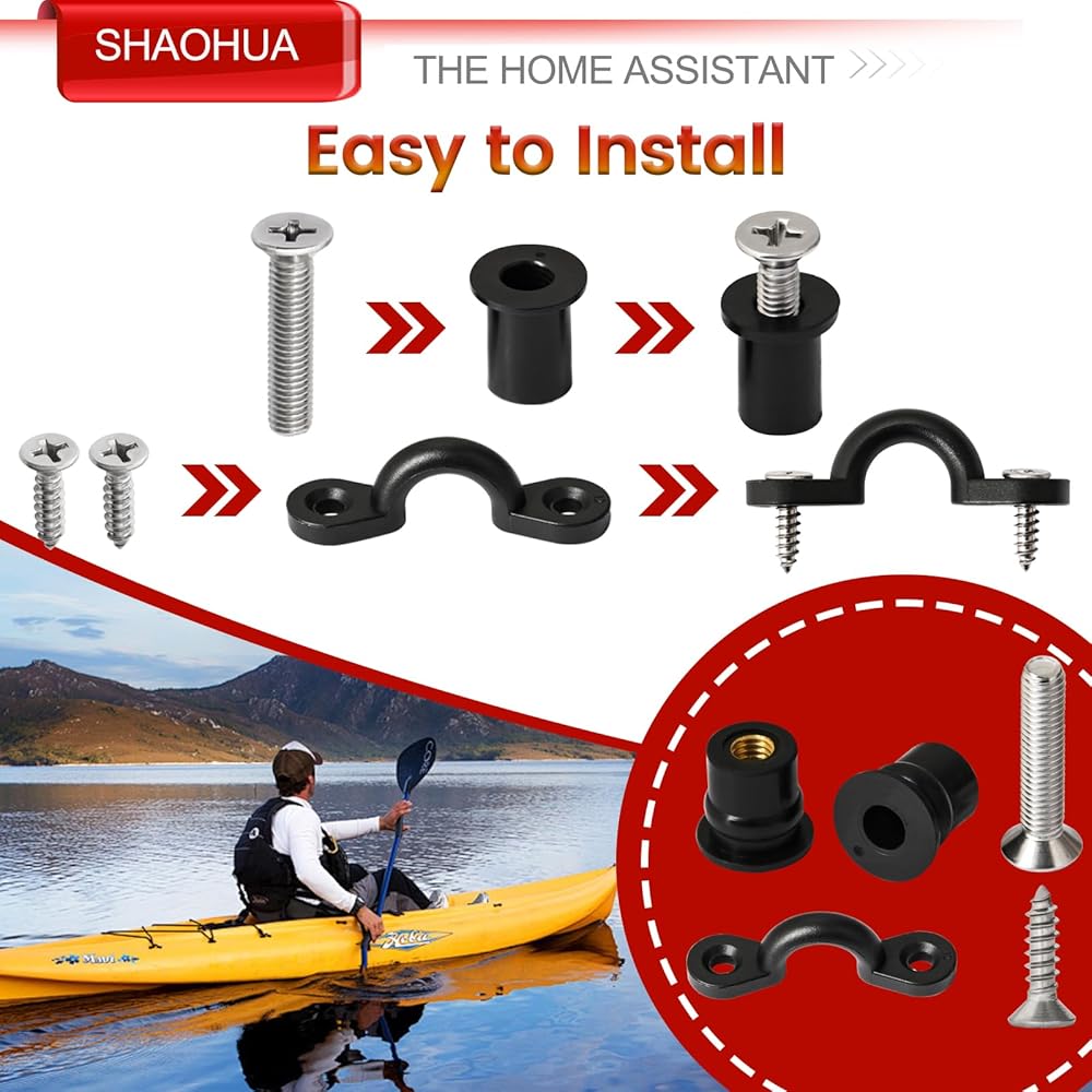 10 Set Pad Eye Kit for Boat Kayak Deck Rigging, Essential Accessory for Kayak Racks: Kayak handle with 304 stainless steel screws for long term use. Versatile use - Securely fastens paddles, fishing rods, paddles, nets, poles(LANYARDS/ ROPES WITHIN 7MM)