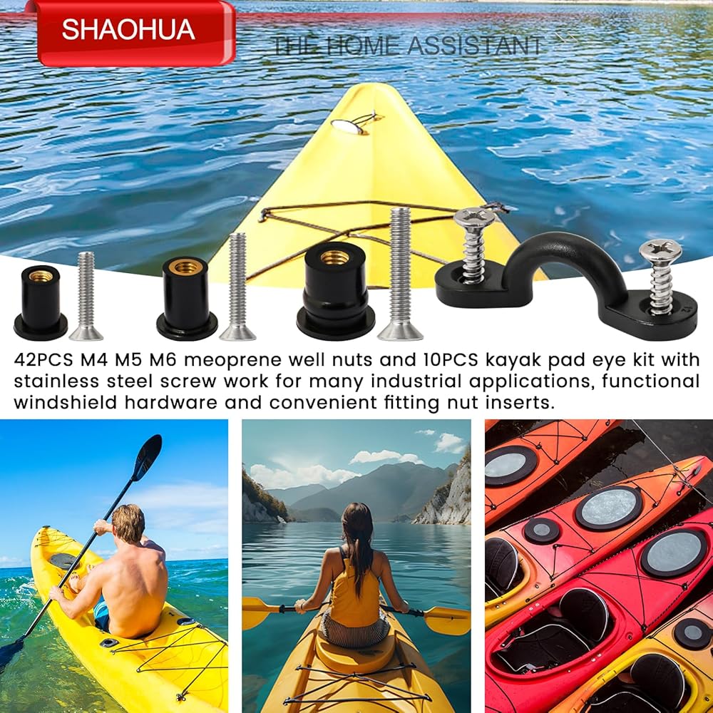 Rust-Resistant and Durable Brass M4 M5 M6 Neoprene Well Nut Set, Great for Use on Outdoors, Indoors and Water: Kayak well nuts are made of high strength rubber brass nuts, have good rust and corrosion resistances