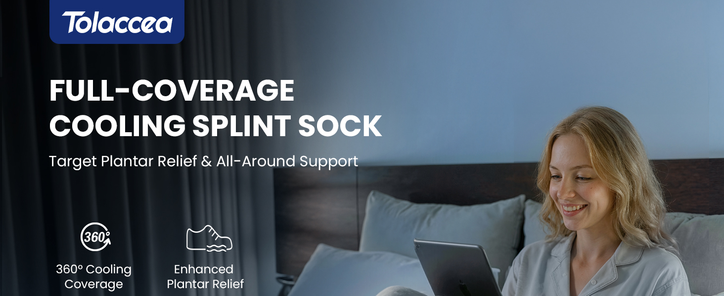 【Triple Anti-Slip Velcro design】Tolaccea ice night splint for plantar fasciitis women & men features triple Velcro straps to prevent slippage during therapy. The durable strap allows for adjustable foot and toe extension, ensuring a secure fit for different foot shapes. Additionally, Tolaccea ice plantar fasciitis sock is available in S/M and L, providing a personalized and comfortable therapy experience for you.