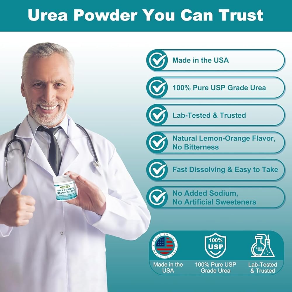 Physician Recommended: Clinical studies show over 87% of patients experienced a meaningful sodium increase with urea powder. Well-tolerated and effective, it has been used safely long-term in ambulatory care. Expert-developed and trusted, our formula delivers dependable support for low sodium management