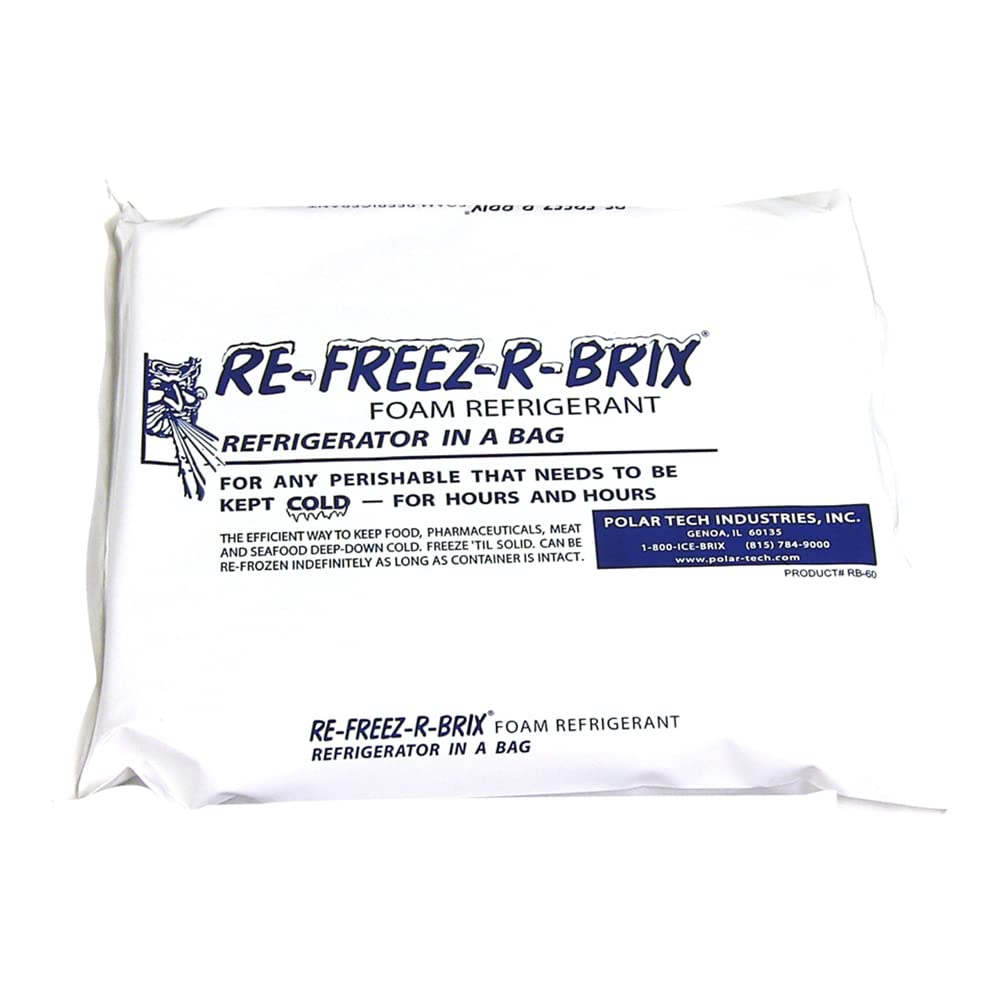 RE-FREEZ-R-BRIX is a block of rigid foam that holds its shape frozen or thawed and is reusable. These refrigerants are non-toxic, sealed in a heavy plastic pouch, and are rated the best in foam refrigerants. Other products just don't compare.