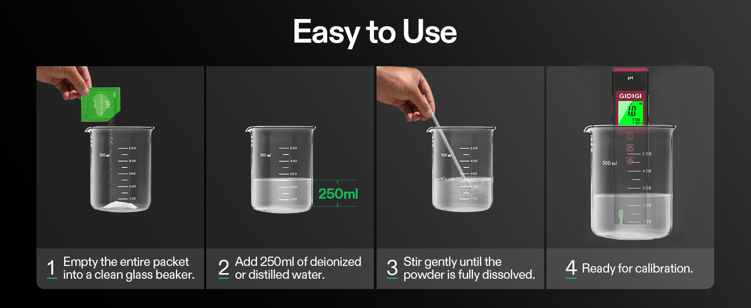Easy-to-Use & Long-Lasting Powder Form: Just mix with distilled water for fresh, contamination-free buffer solution every time. No spills, no waste, and extended shelf life compared to pre-mixed liquids.