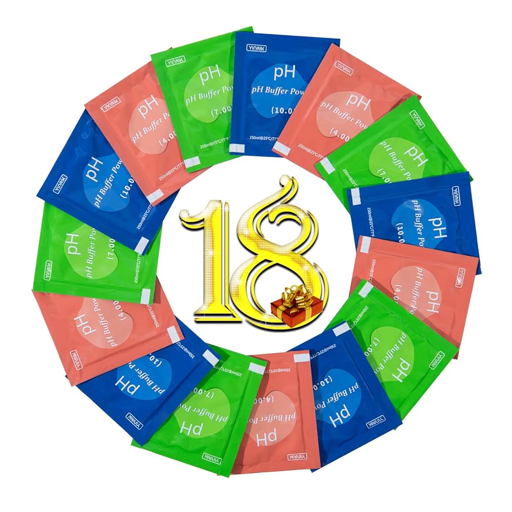 Convenient 18-Pack Multi-pH Kit: Includes 6 packets each of pH 4.00, 7.00, and 10.01 calibration solutions. Perfect for frequent calibration needs, saving time and cost over liquid buffers.