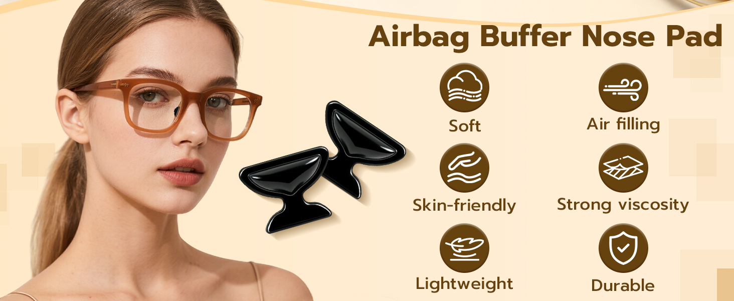 Ergonomic Air-Cushion Pads: Crafted from soft silicone, the nose pads feature an ergonomic concave curve fits snugly to your nasal bridge—eliminating red marks and pressure. The premium material resists yellowing and hardening, the air cushion design provides sufficient cushioning