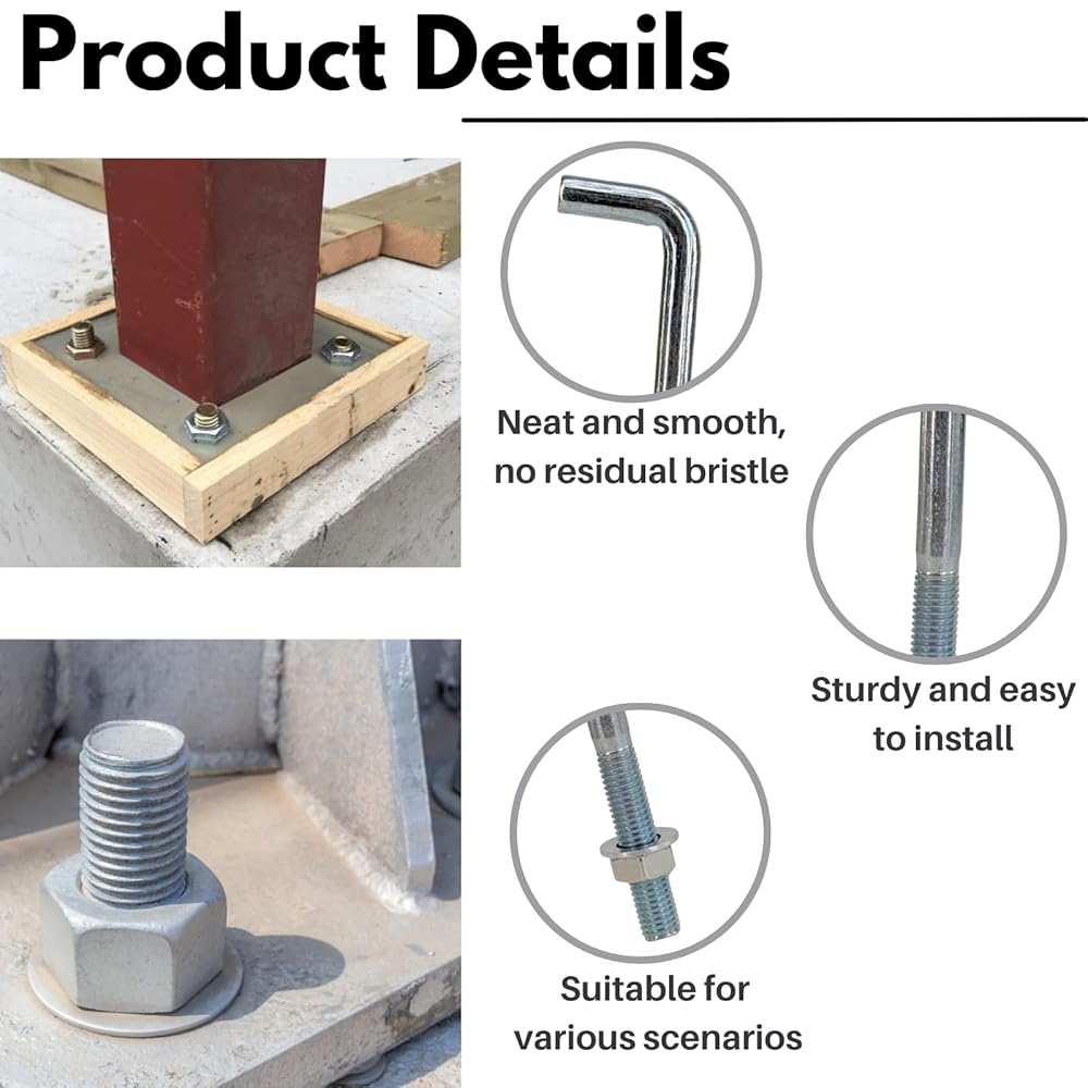 Durable Material: Made of galvanized steel, these anchor bolts provide excellent durability and corrosion resistance, ensuring long-lasting performance while maintaining structural stability. With a high load-bearing capacity, they offer reliable anchoring for various construction needs.