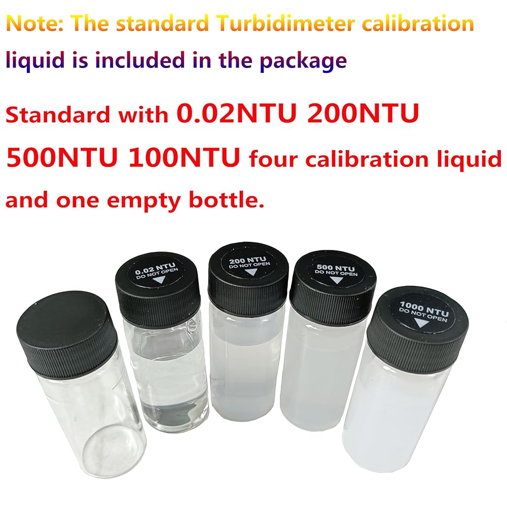 Note: The standard Turbidimeter calibration liquid is included in the package. Standard with 0.02NTU 200NTU 500NTU 100NTU four calibration liquid and one empty bottle.