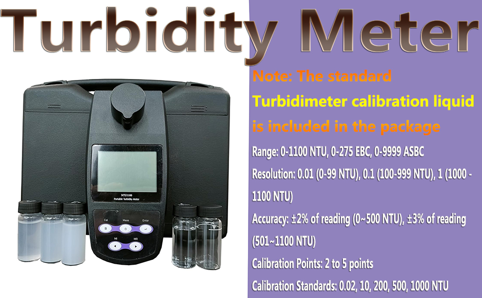 Note: The standard Turbidimeter calibration liquid is included in the package. Standard with 0.02NTU 200NTU 500NTU 100NTU four calibration liquid and one empty bottle.