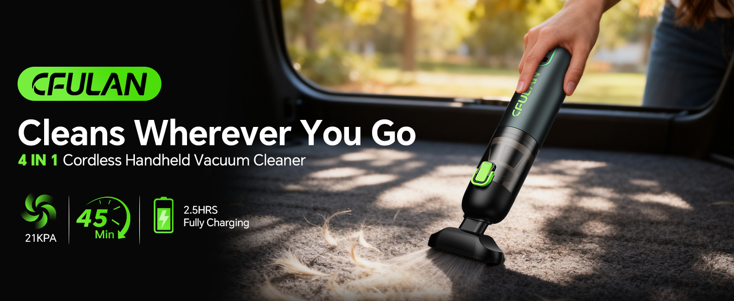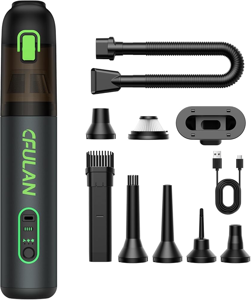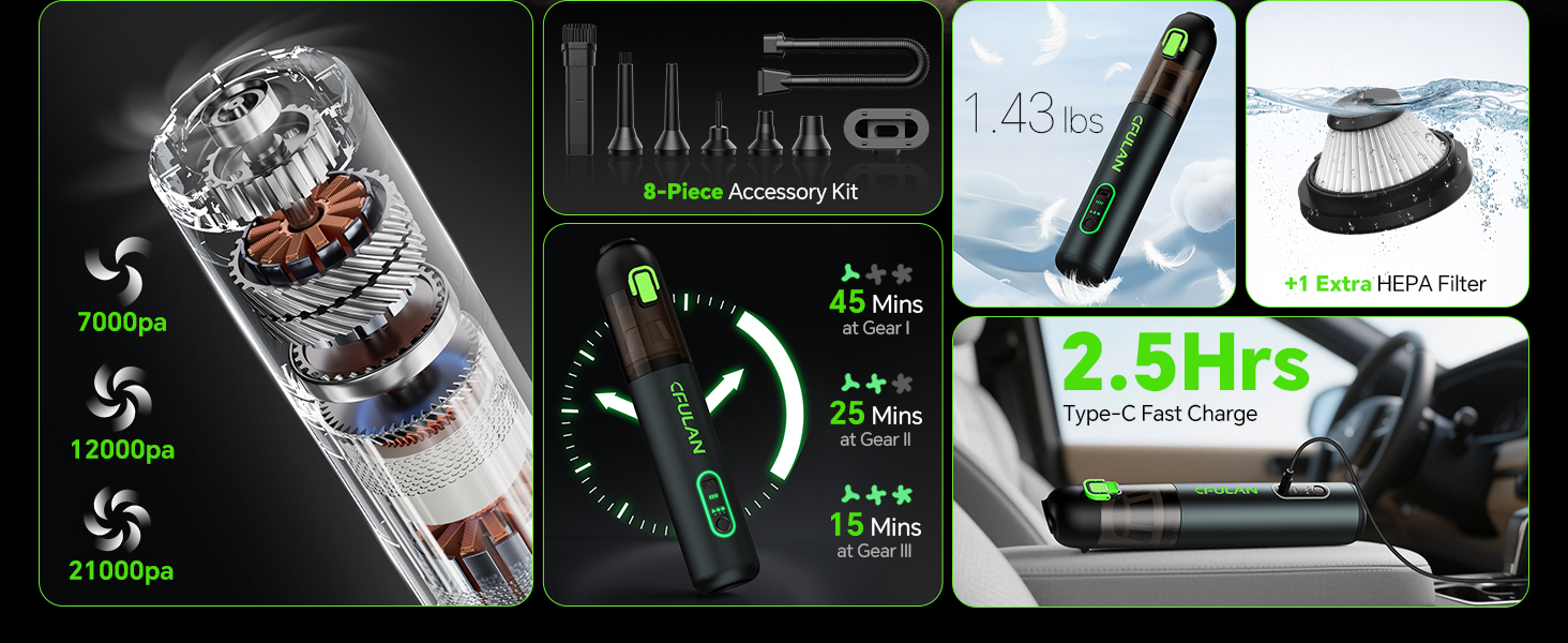 【Pocket-Sized Powerhouse】Weighing only 1.43lbs, this lightweight vacuum is your ultimate on-the-go cleaning partner. Its compact, portable design allows it to slide right under car seats, fit perfectly in cup holders, or stash in a door pocket, ensuring a spotless car is always within reach