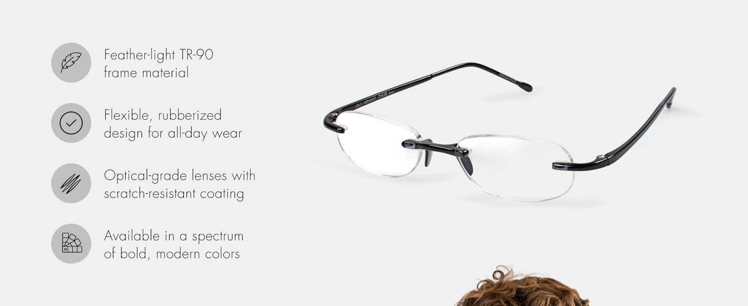 DESIGNED TO ENDURE: We set out on a quest to create reading glasses for women and men that could withstand life's bumpy inevitabilities. Readers you never had to coddle and cosset. By using cutting-edge TR-90 plastic to bring our frames to life, we managed to do just this. It's no wonder why this wonder material has been nicknamed plastic titanium. It stands out with impressive impact resistance and abrasion resistance. This means durability to keep your glasses sleek and intact.
