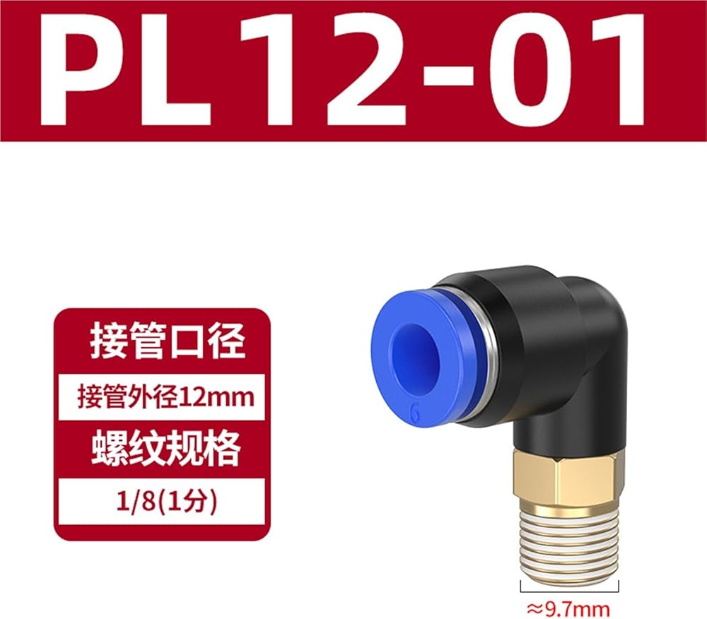 Pneumatic Quick Plugs PL8-02 Right Angle Threaded Elbow Tracheal Air Pump Connector Accessory 4-M5/6-01 1Pcs(蓝色PL12-01)