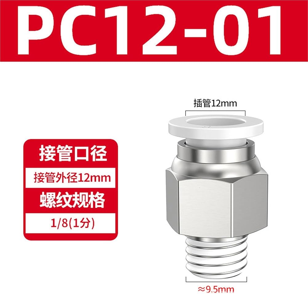 Pneumatic Copper Quick Connector Thread Straight PC4-M5 8/10-02 Trachea 6-01/12-04 Black And White 1Pcs(白色PC12-01)