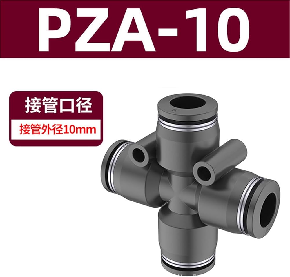 Pneumatic Quick Connector Cross Four-way PZA8/6/10/12/4 6/8/10/12mm Trachea 1Pcs(黑色ZA-10)