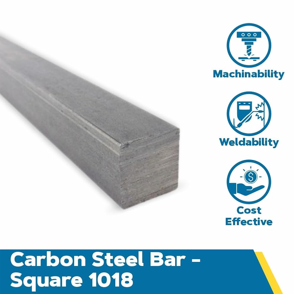 1018 Carbon Steel Square Bar, Unpolished (Mill) Finish, Cold Finished Temper, ASTM A108, 1/4" Thickness, 1/4" Width, 36" Length, OnlineMetals