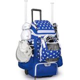 【STABLE ROLLING SYSTEM】The integrated dual pull-handle combines with a reinforced base plate and bottom grab handle to create a stable triangle support system that prevents tipping; 3.5-inch all-terrain wheels provide smooth mobility across any surface. Two side pockets secure 4 bats and knee guards with compression straps to prevent shifting, while fully lined bat sleeves provide additional protection