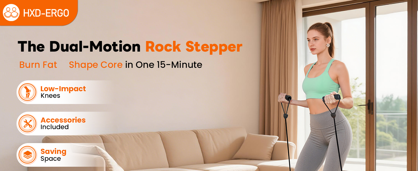 HXD-ERGO Rock Stepper with Elastic Resistance Bands, Side-to-Side Lateral Rocking Motion, Digital Display & High-Capacity Design for Home Leg GluteWorkout