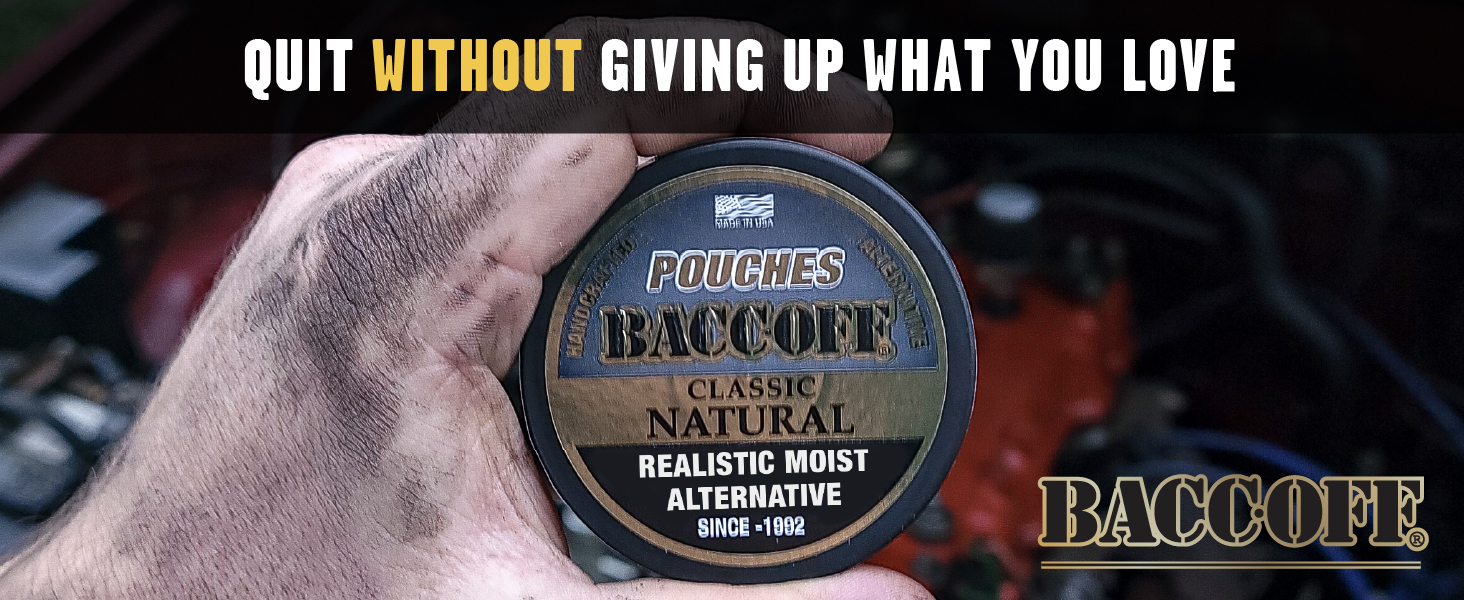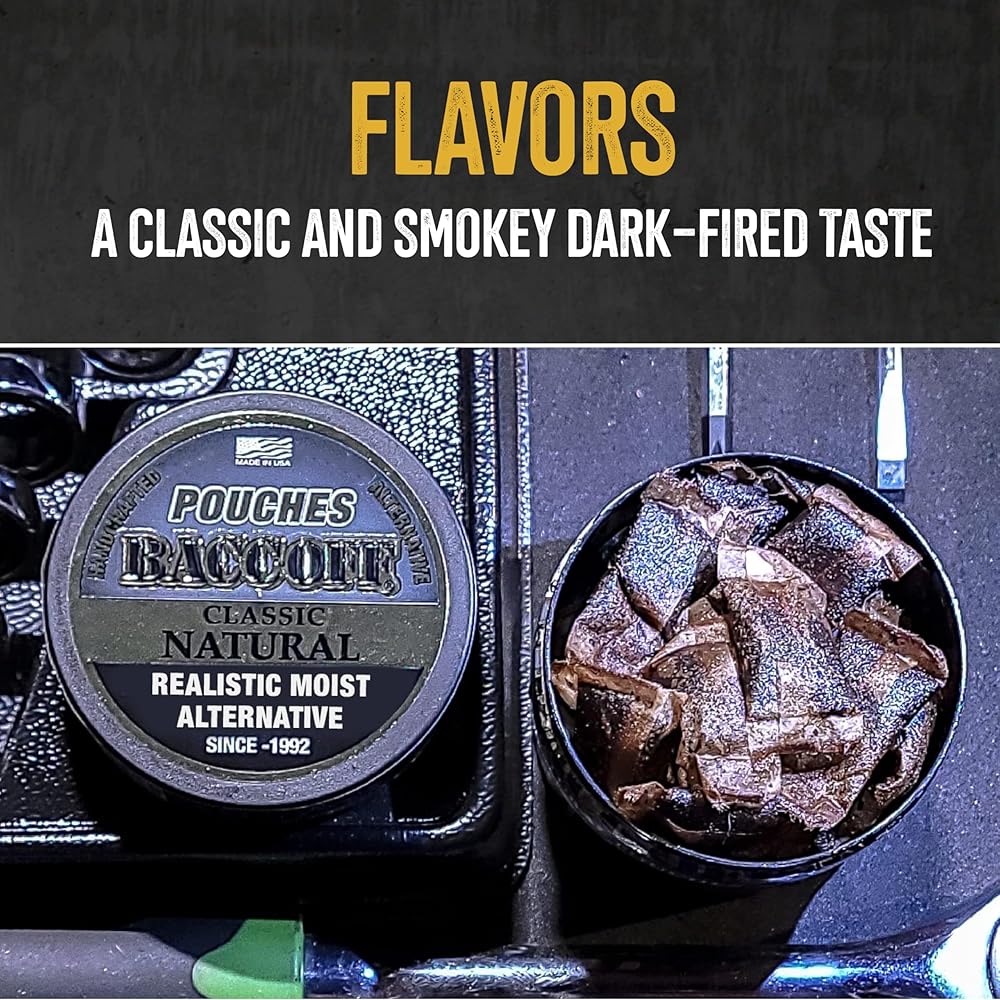 5 Cans, BaccOff Classic Natural Pouches, Black Tea Base with Smoky, Classic Flavors, 16 Pouches Per Can