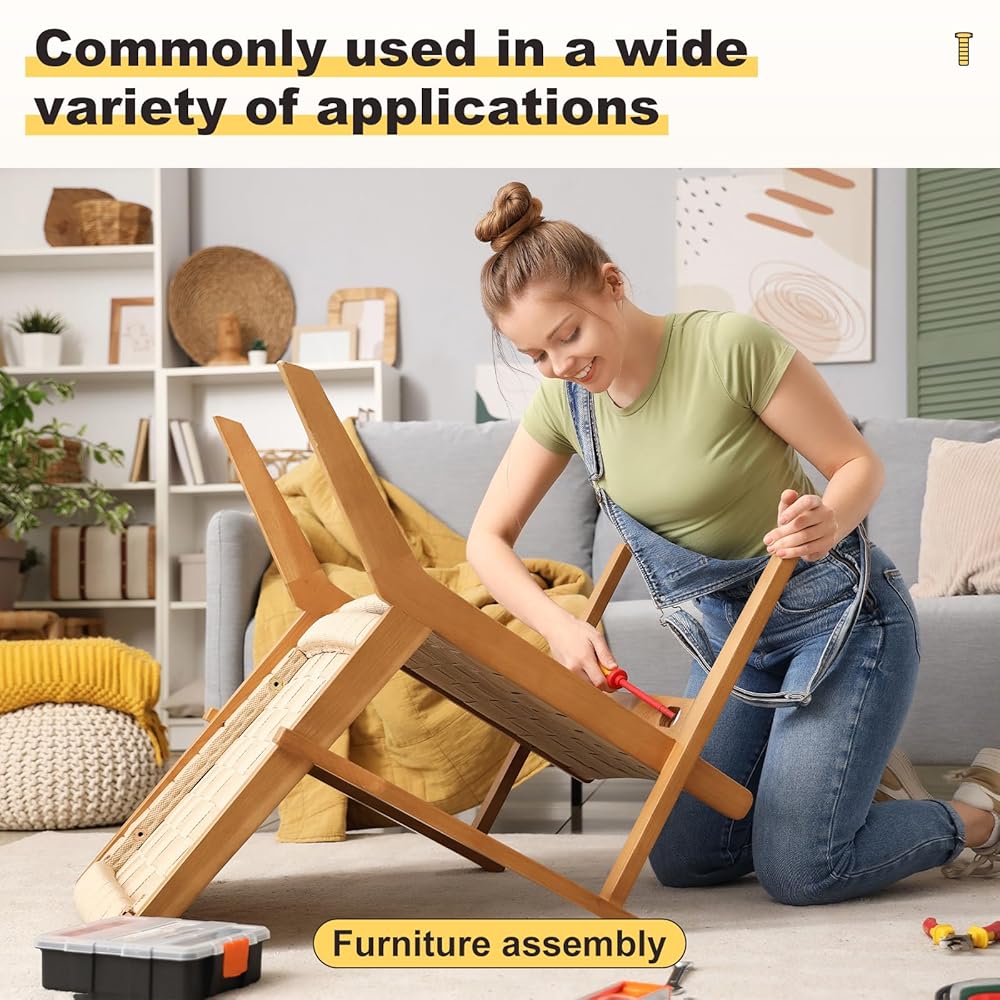 [4]: Perfect for Furniture & Wood Crafting - Specifically engineered for assembling cabinets, tables, shelves, and various DIY woodworking projects, these screws feature sharp UNC threading that ensures a firm grip in wood, plastic, and soft metals.