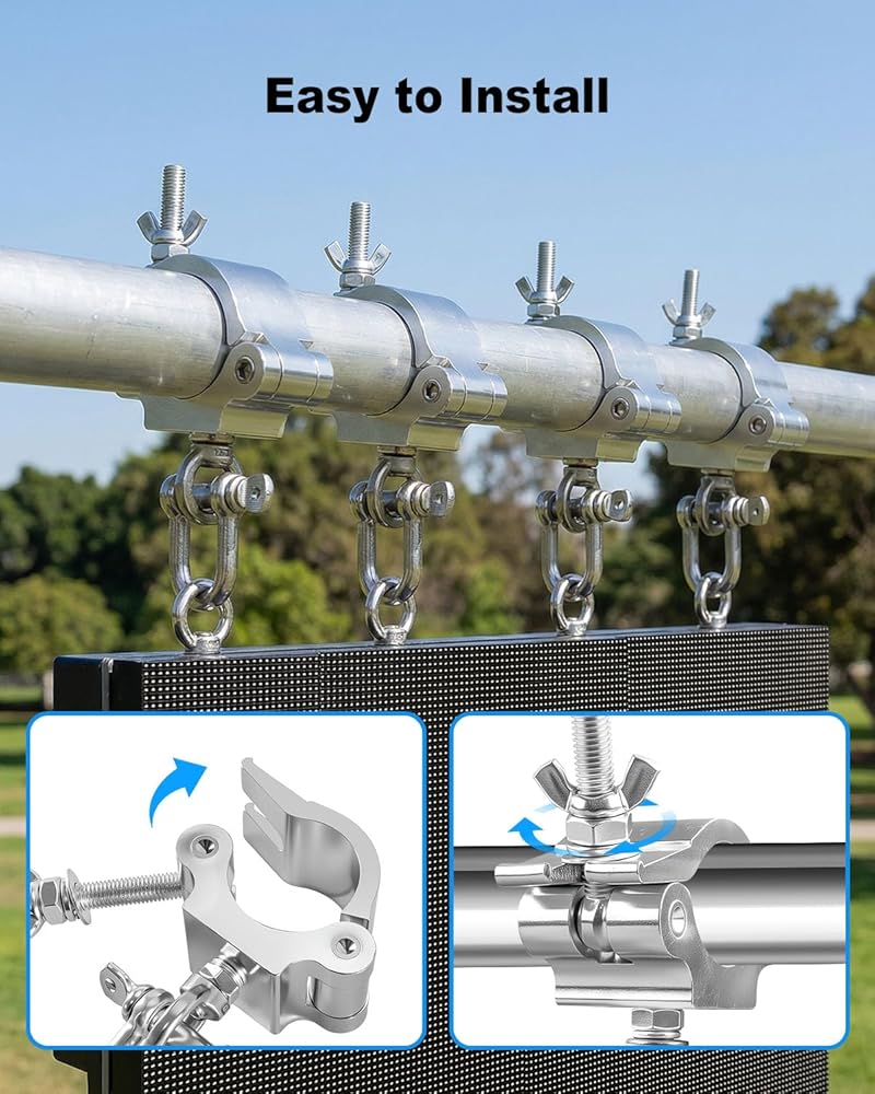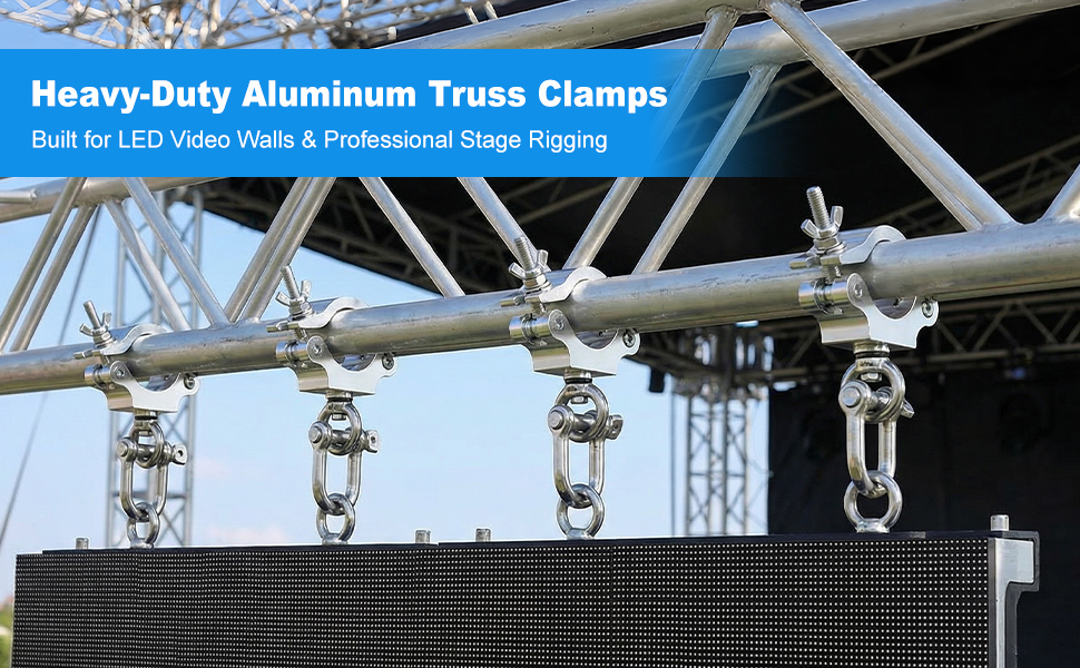 Heavy-duty Aluminum Alloy Construction: Made from premium-grade wider aluminum alloy, these stage clamps deliver excellent strength while remaining lightweight. Designed for professional use, each clamp provides reliable stability for LED video walls, stage lights, and display panels