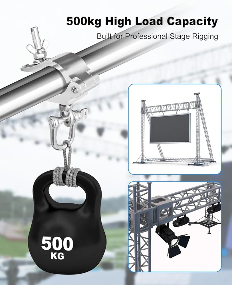 Ideal for LED Screens and Stage Lighting: Perfect for hanging LED video walls, LED panels, truss-mounted screens, stage spotlights, moving heads, and more. Suitable for DJs, theaters, exhibitions, event production companies, and AV professionals