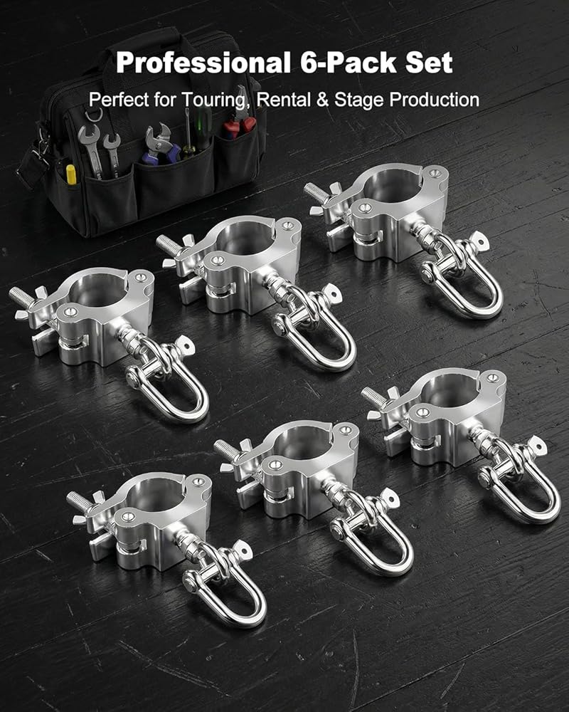 6 Pack Stage Truss Clamps for LED Video Wall, Heavy Duty Wider Aluminum Alloy Truss Clamps, Fits 40–52mm Truss Tubes, Stage Lighting Hooks for LED Screen Display, Stage Lights, DJ Events