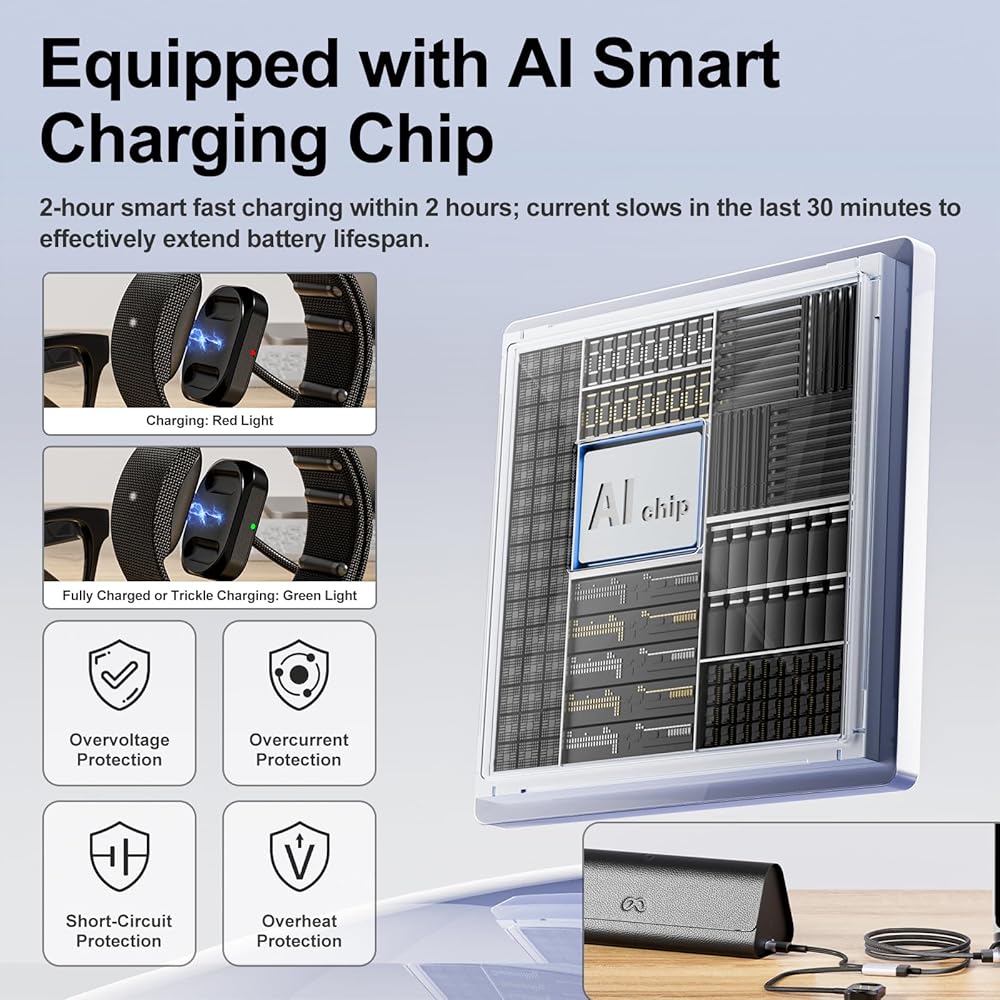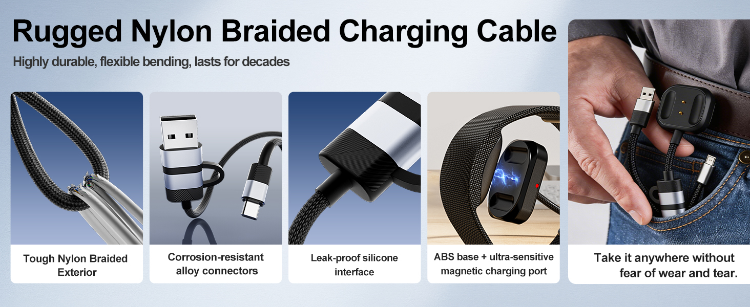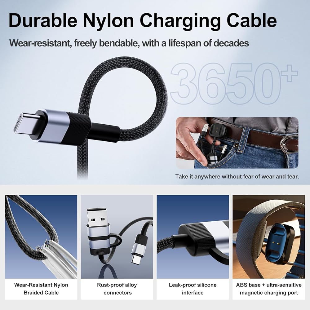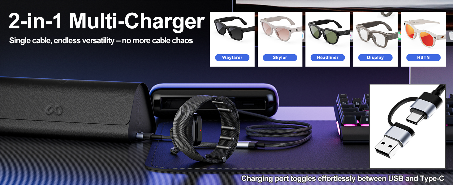 【Premium Durable Construction – Complete Accessories】 High-quality nylon braided cable with rust-proof alloy connectors and leak-proof silicone interface for decades of lifespan. Includes 1× 2-in-1 charging cable – perfect everyday accessories for ray ban meta, meta glasses accessories, and meta display glasses charging solution.