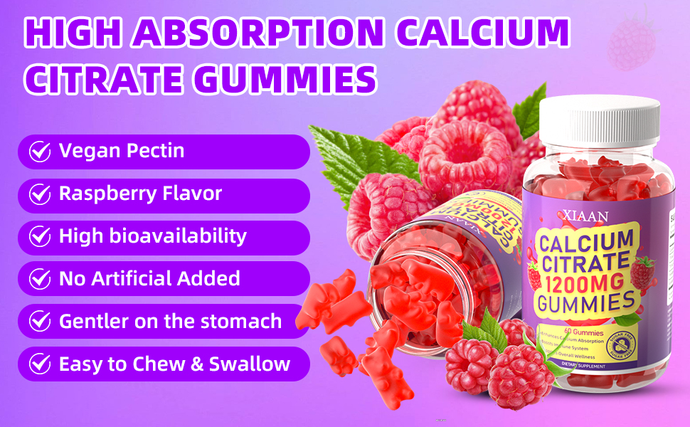 For Adults and Kids: Calcium citrate 1200mg gummies cater to all ages—pecifically designed as calcium gummies for women, men, and kids. Perfect calcium citrate supplements for seeking convenient and effective calcium chews.