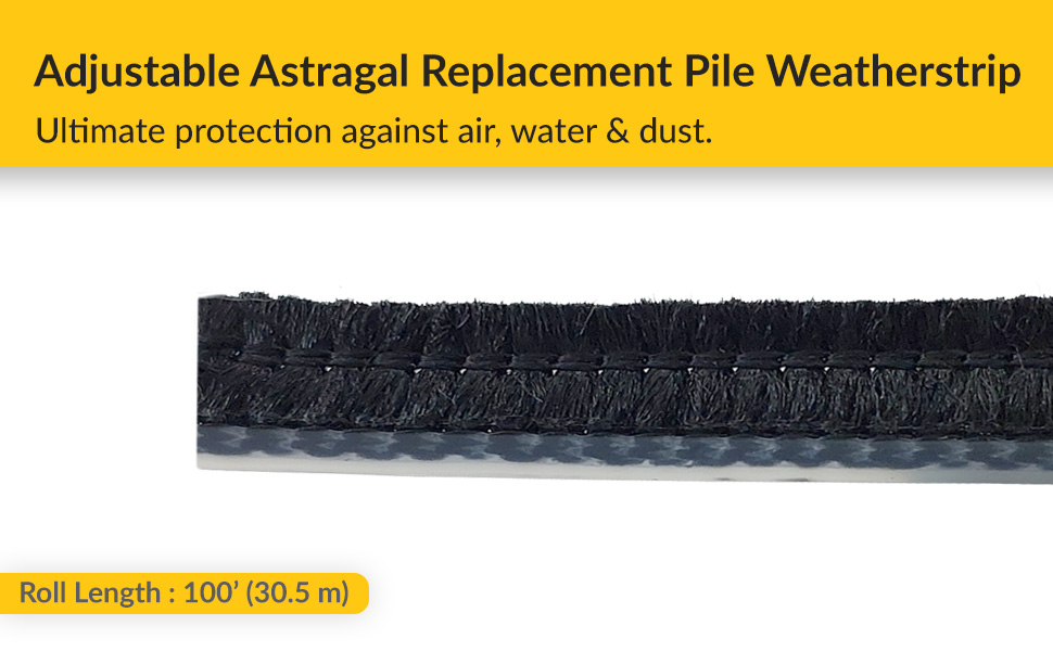 COMPATIBILITY : Designed for adjustable astragal systems only. Confirm pile height, overall height, backing width, and track slot dimensions before purchase to ensure proper fit with existing door or window astragal assemblies.