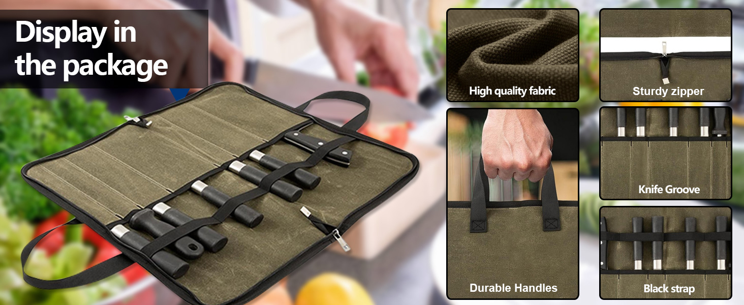 【Knife Case Handy Carrier】The canvas chef knife bag slots are separate to ensure that the tools do not rub against each other. These knife case chef boast an easy-carry handle, which allows convenience and portability to carry your knives with ease and safety when going to work, culinary school, camping, or BBQ