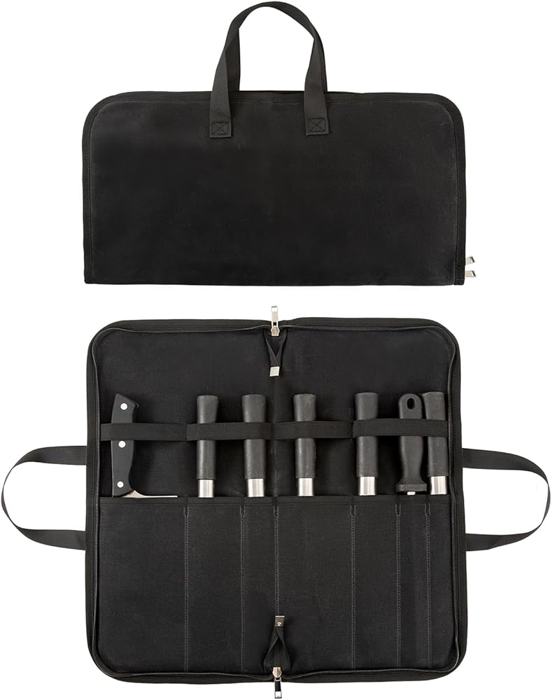 【Lightweight Easy Carry Knife Roll】 Convenient zip and toss into backpack design! This strong, light weight knife carrying case is long lasting and dependable for your kitchen & culinary arts needs. A refreshing, visually pleasing & creative aesthetic bag, brings style & chic high fashion into the kitchen for the chef on the go.