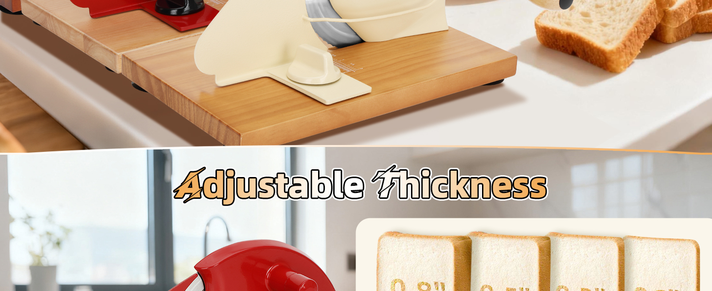 Manual Bread Slicer: This manual bread slicer features customizable slice thickness (0" - 0.8") with clear scale markings, ensuring perfect cuts for thick toast or thin deli-style slices. A thoughtful gift for baking enthusiasts!