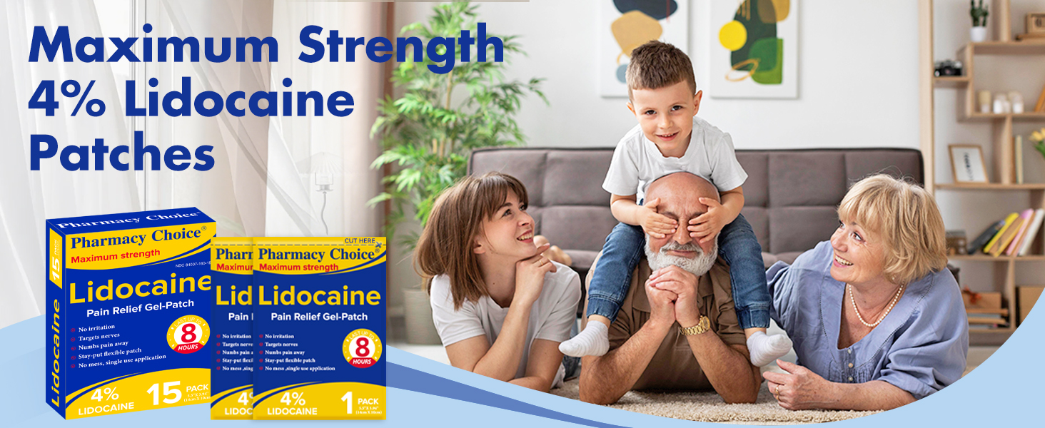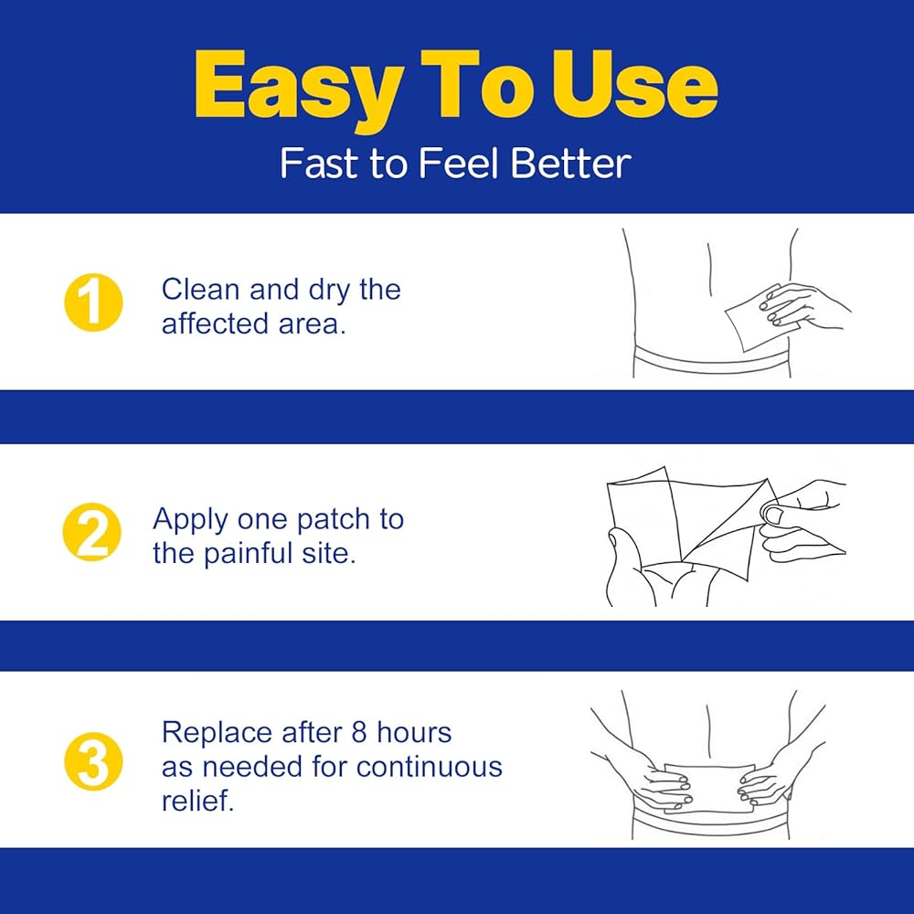 Fragrance-Free : Our 4% Lidocaine patches are unscented, The patches are made with a safe gel that adheres to clean, dry skin, leaving no residue and won't stain clothing. Flexible fit, not easy to fall off. No odor ensures that it can be used discreetly in any environment, without worrying about the strong odor affecting your life.
