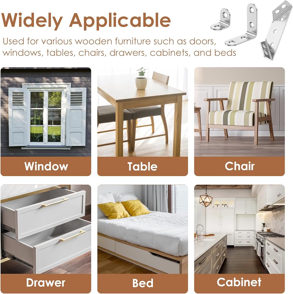 ⚙️Effortless Installation with Included Hardware: Every angle bracket and corner brace comes with pre-drilled holes for precise alignment. All necessary screws are provided. Quickly secure wall brackets for shelves or reinforce joints with minimal effort.