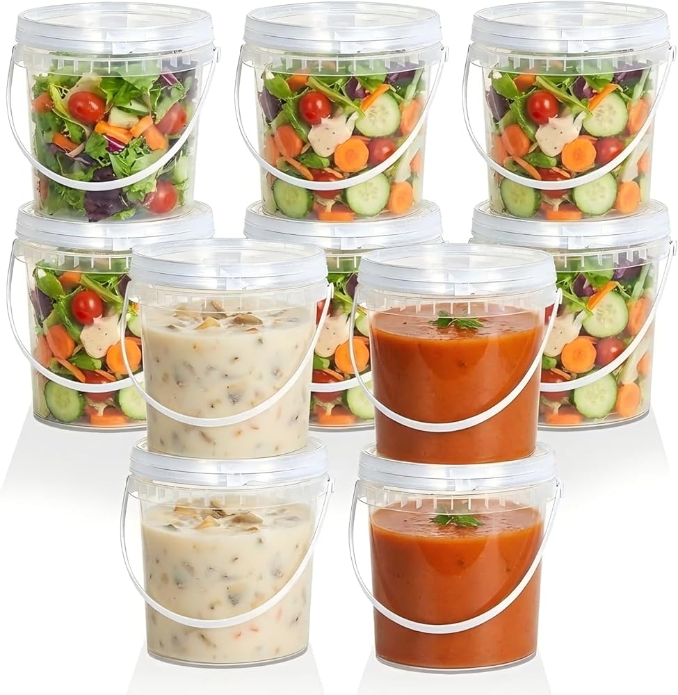 QUALITY MATERIAL:Clear plastic bucket with lids are made of high quality pp plastic, BPA free food grade material, no color loss or discoloration, safe for meal prep containers plastic. The thick and durable airtight plastic bucket ensures safety and reusability, making them ideal for everyday use.