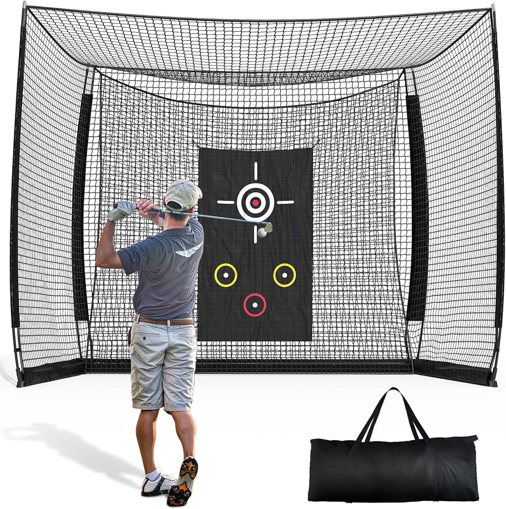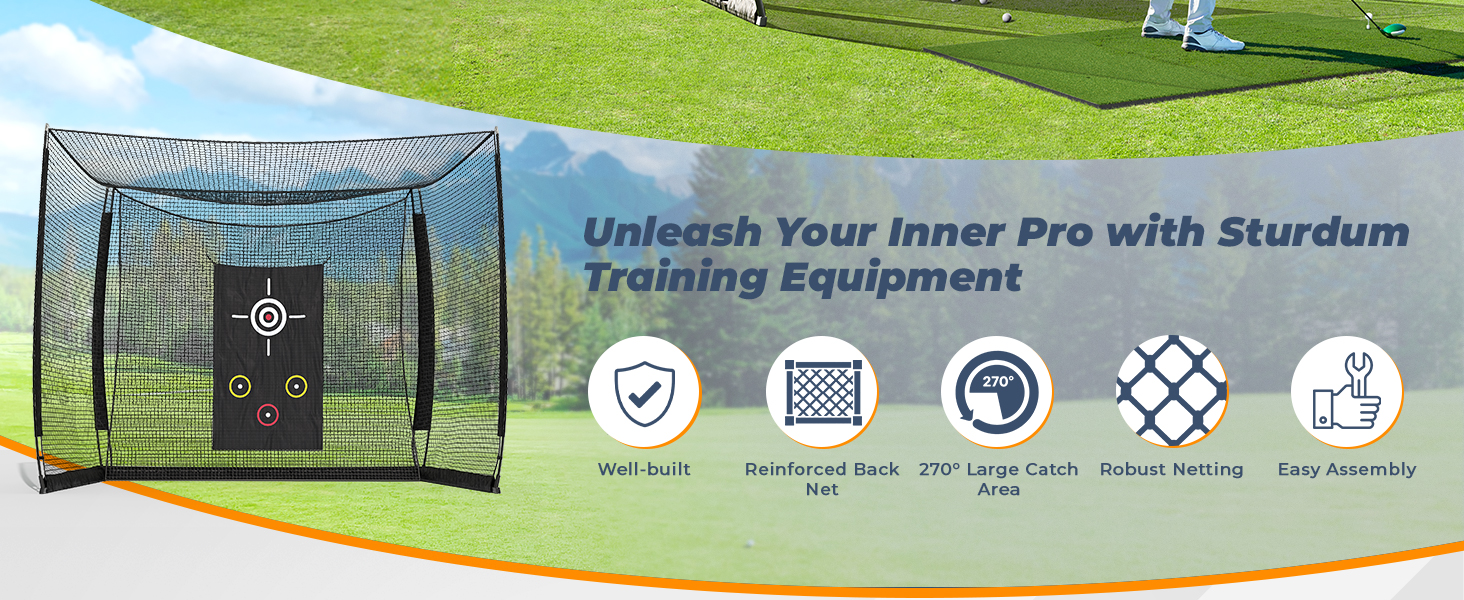Durable and Weather Resistant: This range cage's heavy-duty frame prevents tipping and ensures safety during intense golf swings. Resistant to UV damage, weather elements in backyard or indoor environments for year-round use