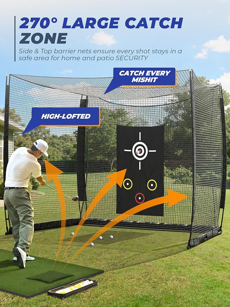 Your Reliable Practice Partner: Near-270° large catch zone handles aggressive slices/hooks effortlessly, while the target cloth provides instant accuracy feedback and 50% noise reduction – so you focus on improvement, not chasing balls or strike through the ceiling