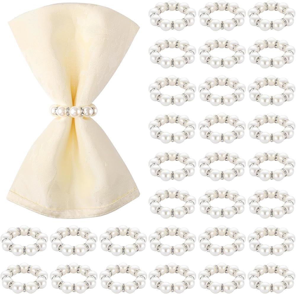 【Glamorous Pearl & Rhinestone Design】Each ring is artfully arranged with gleaming imitation pearls and sparkling rhinestones. This elegant combination creates a luxurious and radiant aesthetic that enhances any table setting.